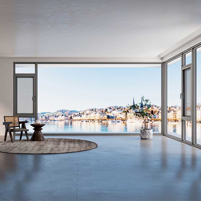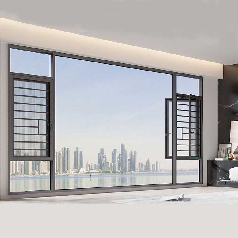 Projekt okna jest wyjątkowy. Ościeżnice wewnętrzne i zewnętrzne zlicują się ze sobą, a ościeżnica i skrzydło znajdują się na tym samym poziomie. Brak wystających elementów materiału sprawia, że całe okno jest gładsze i piękniejsze. Miękkie i twarde, współwytłaczane, zintegrowane paski pianki do gięcia z EPDM stosowane są w celu zapewnienia odporności na warunki atmosferyczne i utlenianie. Podwójne taśmy uszczelniające EPDM charakteryzują się odpornością na warunki atmosferyczne, dobrą elastycznością i odpornością na odkształcenia ściskające. Standardowe dwuwarstwowe izolowane szkło hartowane, wysoki standard izolacji akustycznej 5+20A+5 lub wybierz potrójne szkło z podwójną komorą 5+6A+5+6A+5, aby uzyskać wielokrotną izolację akustyczną, izolacyjność akustyczną większą niż 40dB, zapewniając ciche środowisko życia w pomieszczeniu.